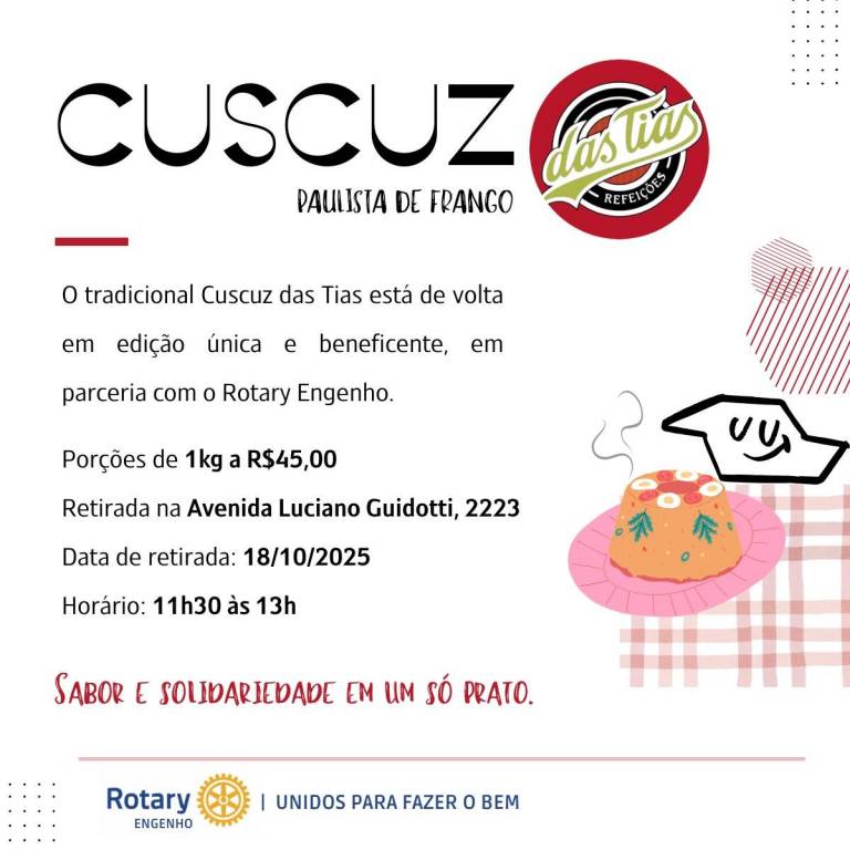 EVENTO ARRECADATÓRIO PARA A FUNDAÇÃO ROTÁRIA E DEMAIS PROJETOS DO CLUBE COM UM TOQUE E SABOR PAULISTA. REMETENDO AO SABOR DE HISTORIA E PROPOSITO.