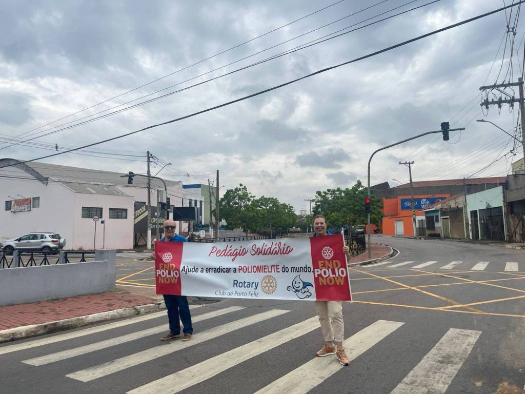 Na manhã deste sábado, 18 de outubro, o Rotary Club de Porto Feliz promoveu uma ação solidária e de conscientização no semáforo da Avenida Dr. Antônio Pires de Almeida. Com faixas e muita disposição, rotarianos participaram do Pedágio Solidário da Poliomielite, chamando a atenção dos motoristas para uma das causas mais importantes da saúde global: a erradicação da poliomielite, doença viral altamente contagiosa que pode causar paralisia infantil.