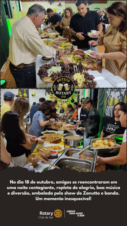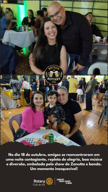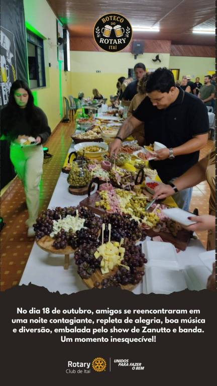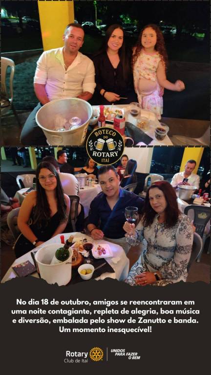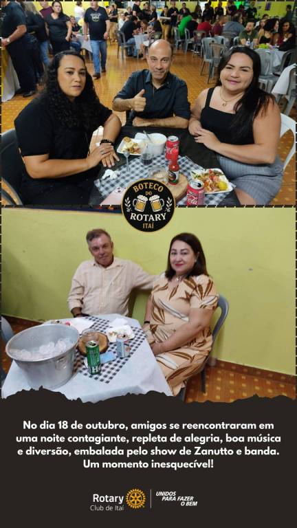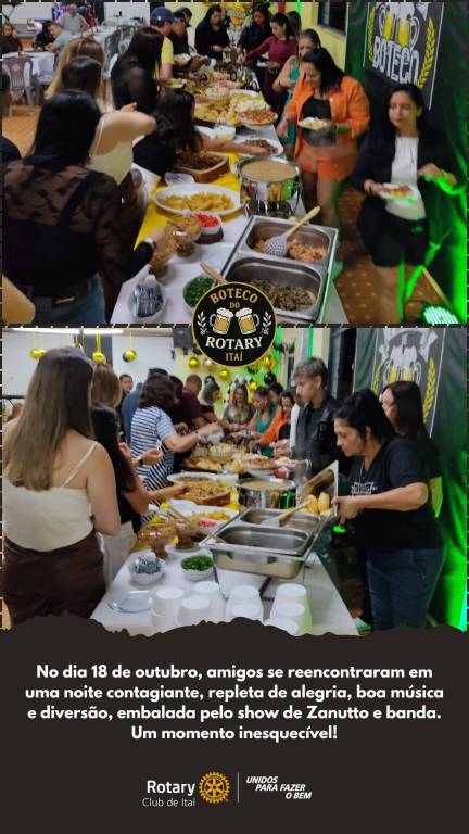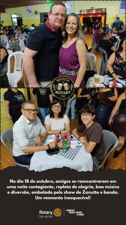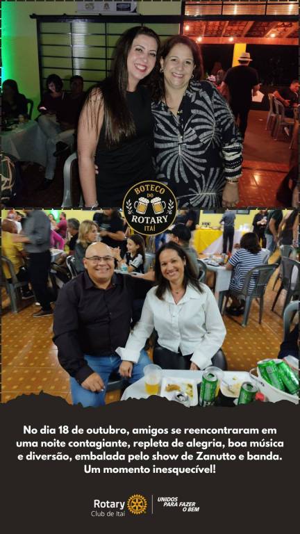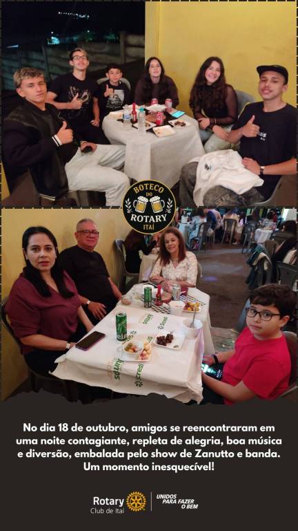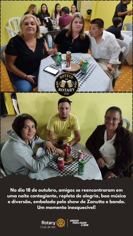 No sábado, 18 de outubro, o Boteco Rotary Itaí reuniu companheirismo, alegria e muita animação. A noite foi marcada pela magia da amizade, que uniu todos em um clima de descontração.