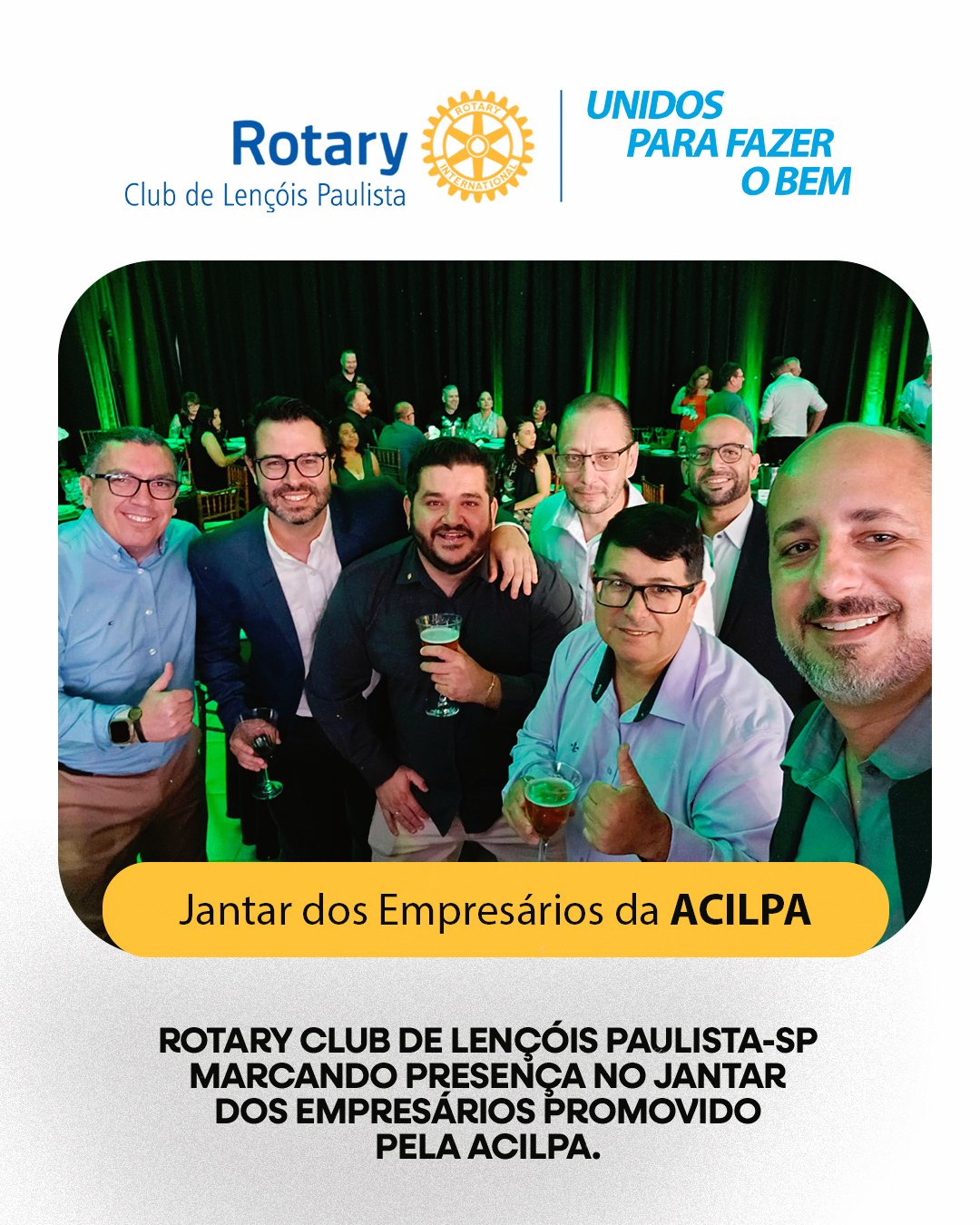 O Rotary Club de Lençóis Paulista-SP marcou presença no Jantar dos Empresários da ACILPA, um evento que celebra o empreendedorismo, o networking e o desenvolvimento da nossa cidade. 💼🌟