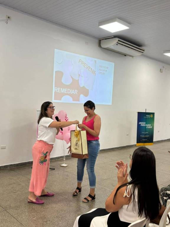 No último sábado, dia 25 de outubro de 2025, o Rotary Club de Porto Feliz realizou uma manhã especial em prol da campanha Outubro Rosa, dedicada à conscientização sobre a prevenção e o diagnóstico precoce do câncer de mama. O evento contou com a presença da Dra. Márcia Rocco, que ministrou uma palestra informativa e inspiradora sobre a importância dos exames regulares e dos cuidados com a saúde da mulher.