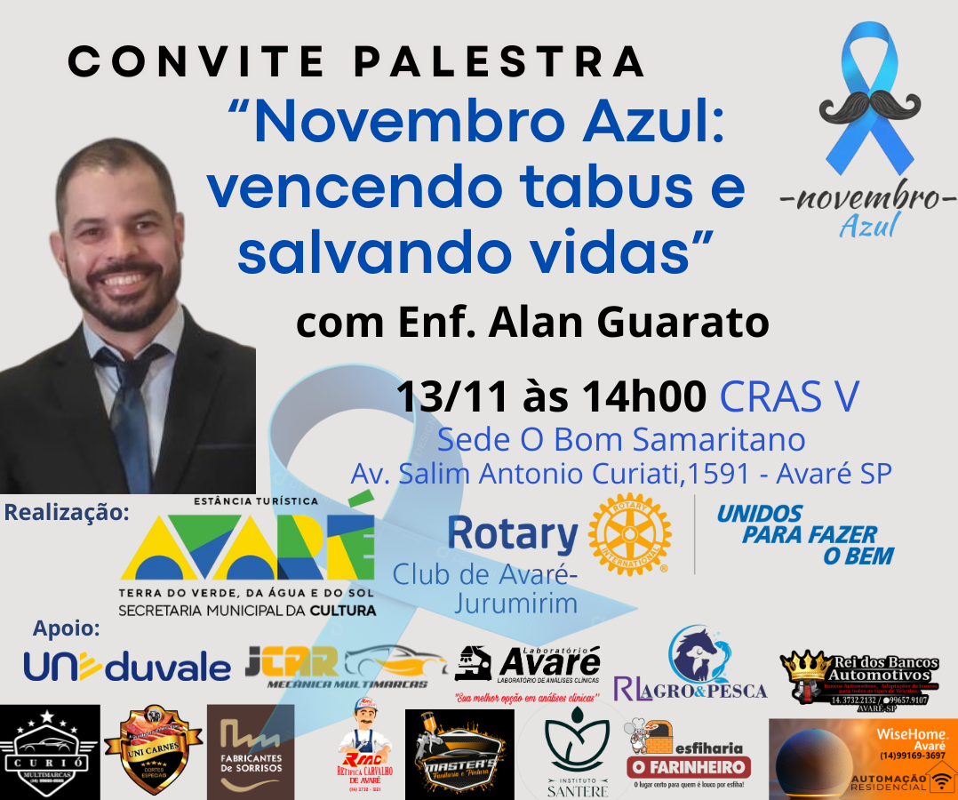 Na quinta, dia 13, às 14hr será realizada palestra gratuita em parceria com o @crastropical na sede da Bom Samaritano, abordando a conscientização do homem para o Câncer de Próstata.