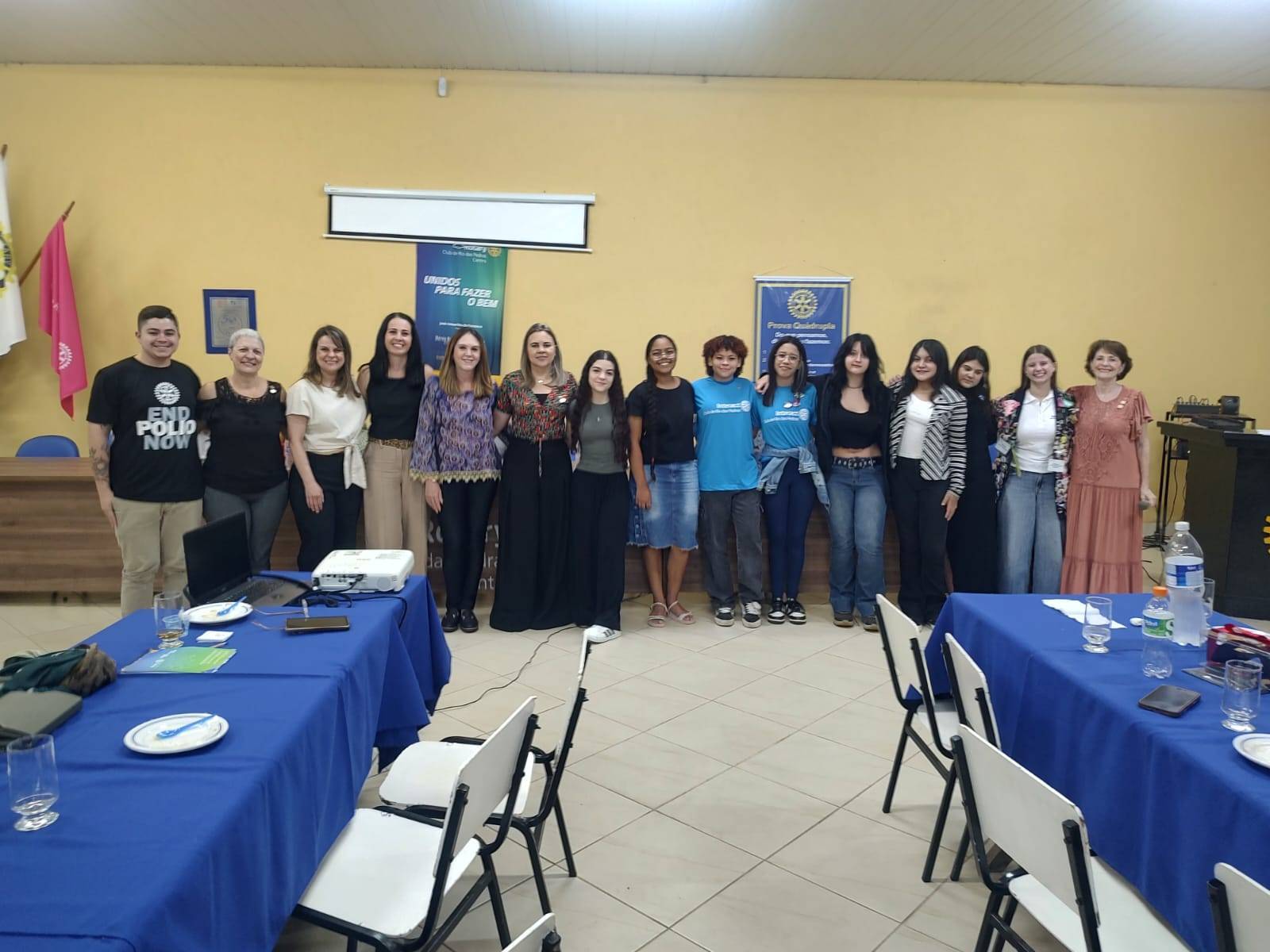 O Dia Mundial do Interact é comemorado em 05 de novembro, e na nossa Festiva do dia 06/11/2025 pudemos homenagear os Interactianos pelos trabalhos desenvolvidos e por todos os Projetos realizados na SMI. Na oportunidade, a Companheira Valdete Padoveze que é membro do Comitê Executivo de Rotarianos da MDIO Interact Brasil, colocou o pin do Interact na Companheira Joyce Vendramin Ganassim, sócia-fundadora do Interact Club de Rio das Pedras em 1991. Uma noite memorável!