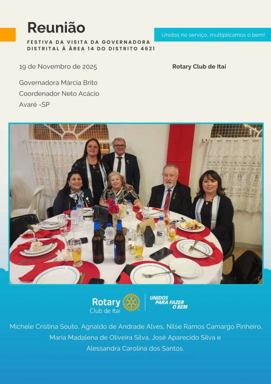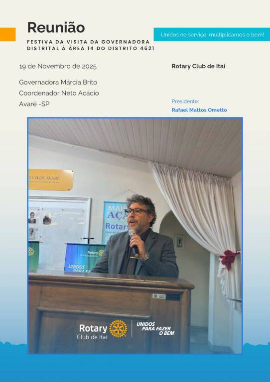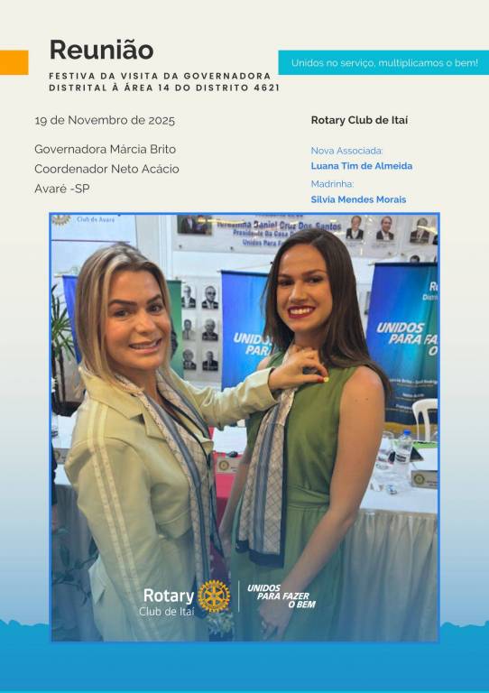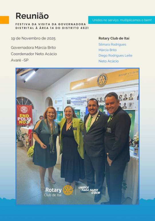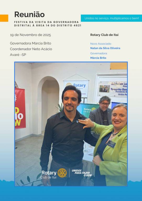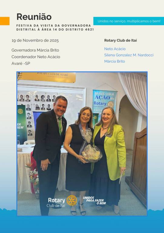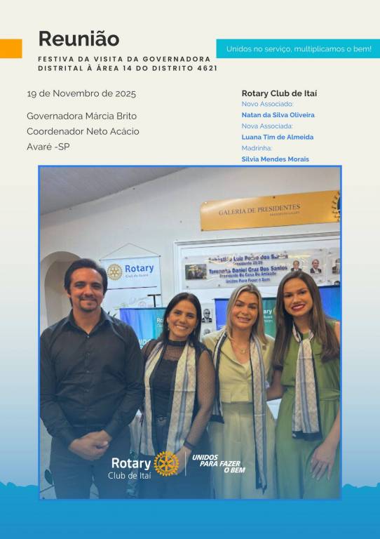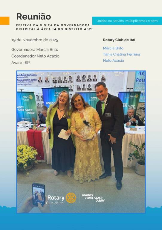 Rotary Club de Itaí — Esta quarta-feira, 19 de novembro, foi marcada por encontros memoráveis. Durante o dia, tivemos a presença da Governadora Márcia Brito e do Coordenador Neto Acácio, que passaram o dia conosco.