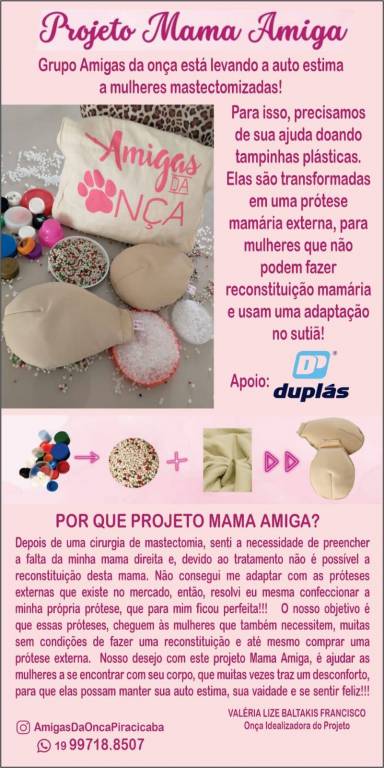 tampinas solidárias em prol das amigas da onça em projeto com cancer de mama