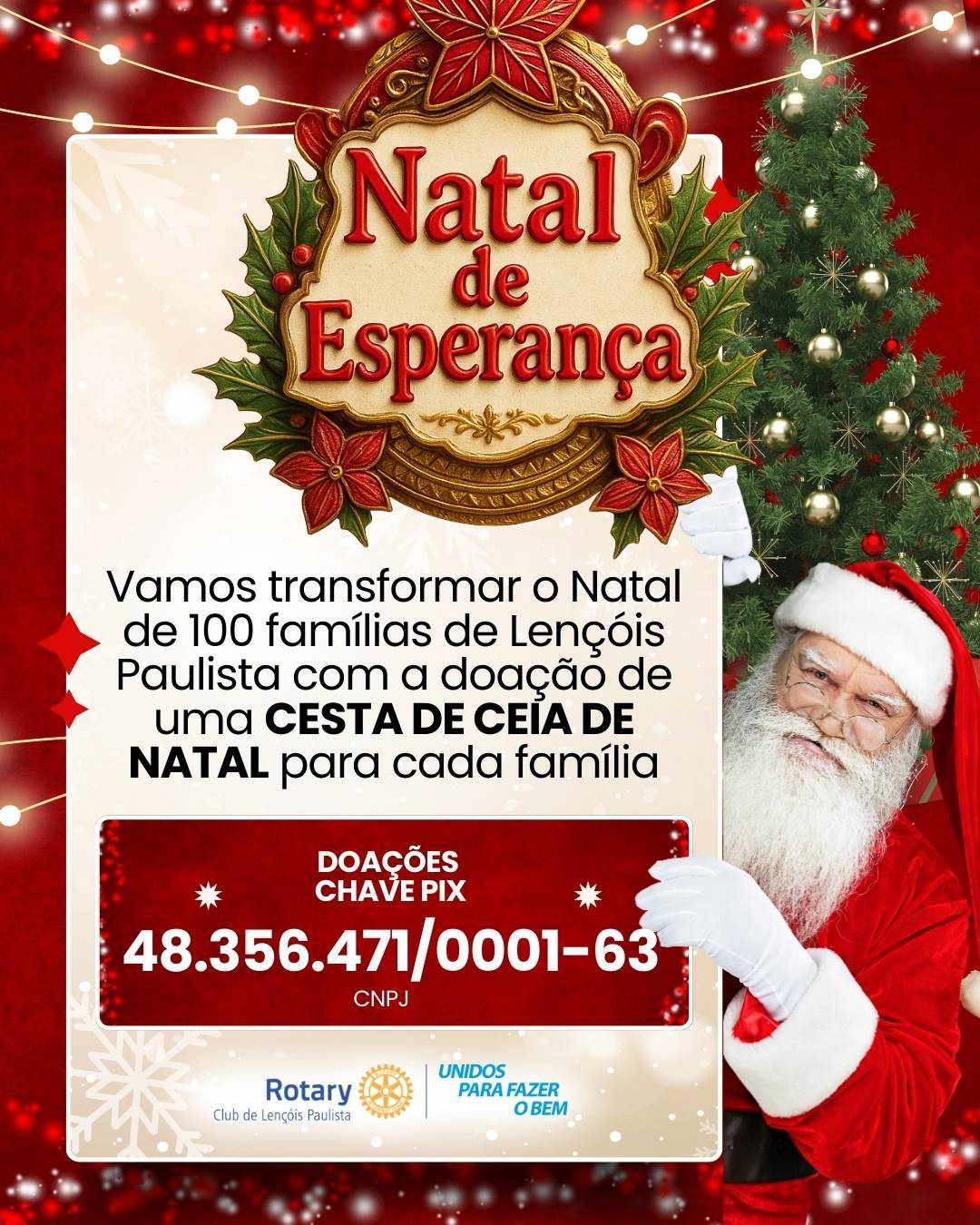 #NatalDeEsperança #RotaryLençóisPaulista #Solidariedade #Doe #FaçaOBem #UnidosParaFazerOBem #Natal2025 #CorrenteDoBem