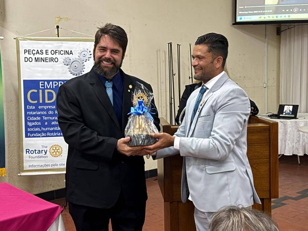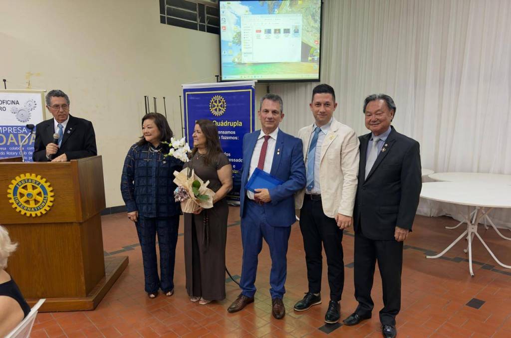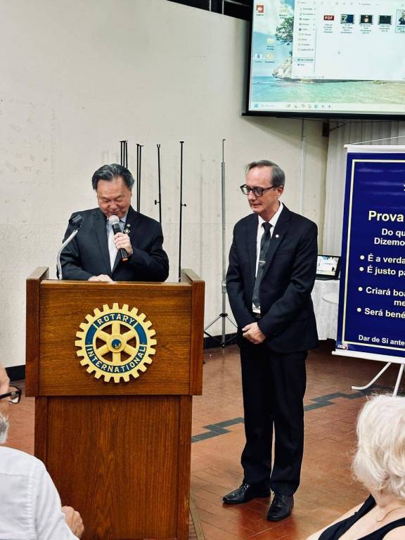 O Cerimonial de Posse foi conduzido pelo governador 2021/22, Luiz Roberto Moreira Alvim, com entusiasmo e reconhecimento da importância da união de esforços em prol da comunidade. Um vídeo especial da Governadora 2025/26, Márcia Brito, parabenizou o clube e deu as boas-vindas ao casal. Os padrinhos foram Wellington Hoshino, governador 2013/14, e Elizabete Hoshino, coordenadora distrital 2013/14. O material rotário foi entregue por Reverton Romão Sampaio, da Equipe Distrital de DQA, representando o governador Mingo.