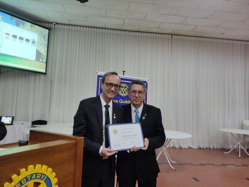O companheiro Wellington Hoshino, governador distrital 2013/14, presidiu o Cerimonial de Entrega de Título de Reconhecimento, concedendo ao companheiro Eduardo Zornoff o Título Paul Harris, entregue pelo governador 2021/22, Luiz Roberto Moreira Alvim.