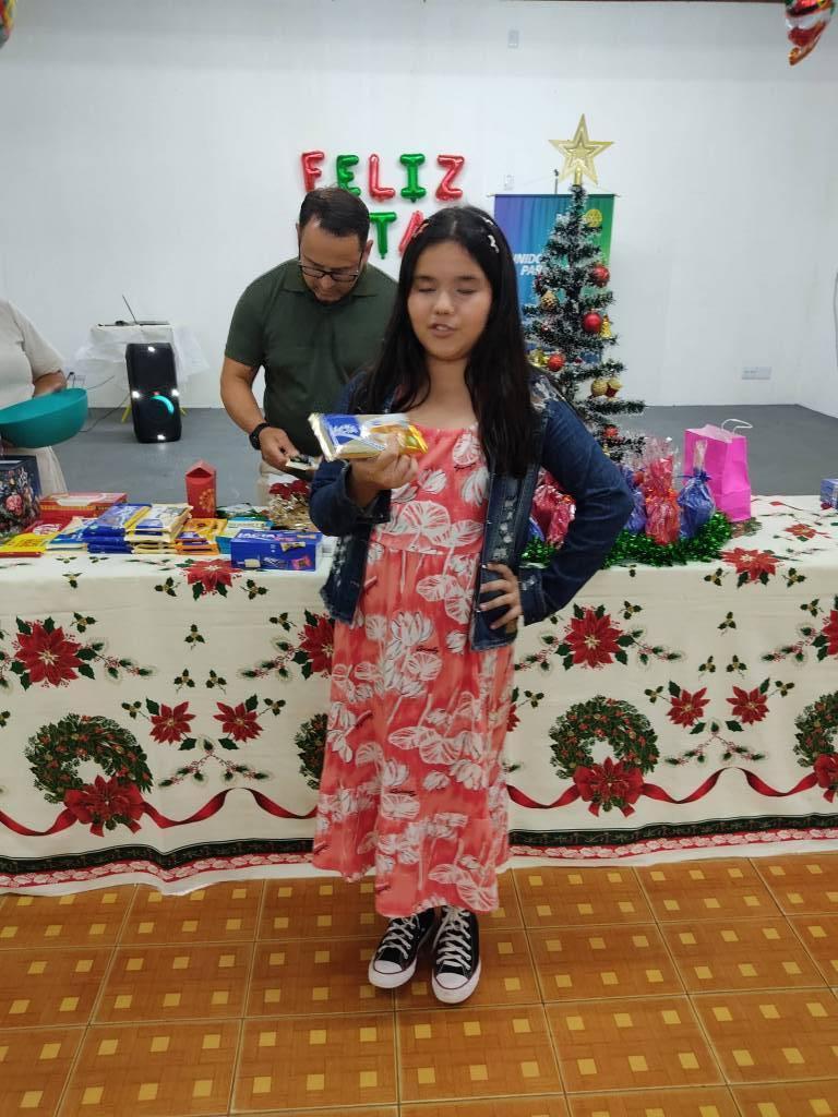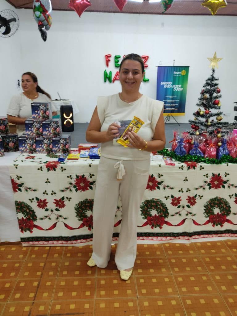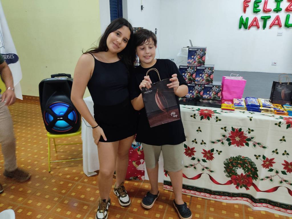 A noite foi enriquecida por uma bela decoração natalina, refletindo o verdadeiro espírito do Natal: amor, esperança, solidariedade e amizade. Um dos momentos mais aguardados foi a tradicional brincadeira do chocolate, em que cada participante levou um chocolate de sua preferência. A dinâmica proporcionou descontração e culminou em uma arrecadação de R$ 730,00.