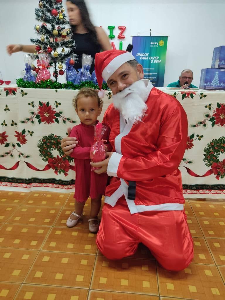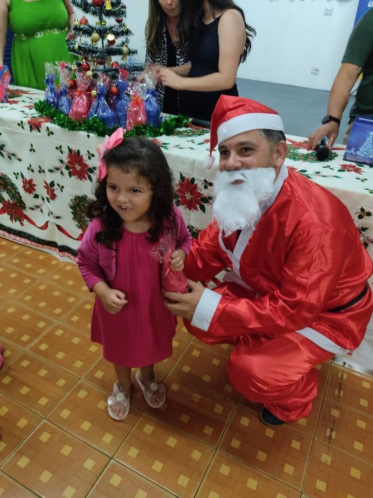 O Papai Noel nos visitou durante a nossa festa, encantando a todos com sua presença especial. As crianças ficaram entusiasmadas e maravilhadas, vivendo momentos de pura alegria e emoção. Com muito carinho e amor, o Papai Noel distribuiu suas lembrancinhas, espalhando sorrisos e fortalecendo o verdadeiro espírito do Natal entre as crianças.