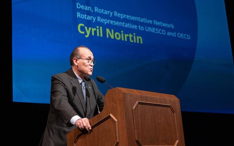Cyril Noirtin, decano da Rede de Representantes do Rotary, afirmou que os valores partilhados pela ONU e pelo Rotary estão hoje mais ameaçados do que nunca.