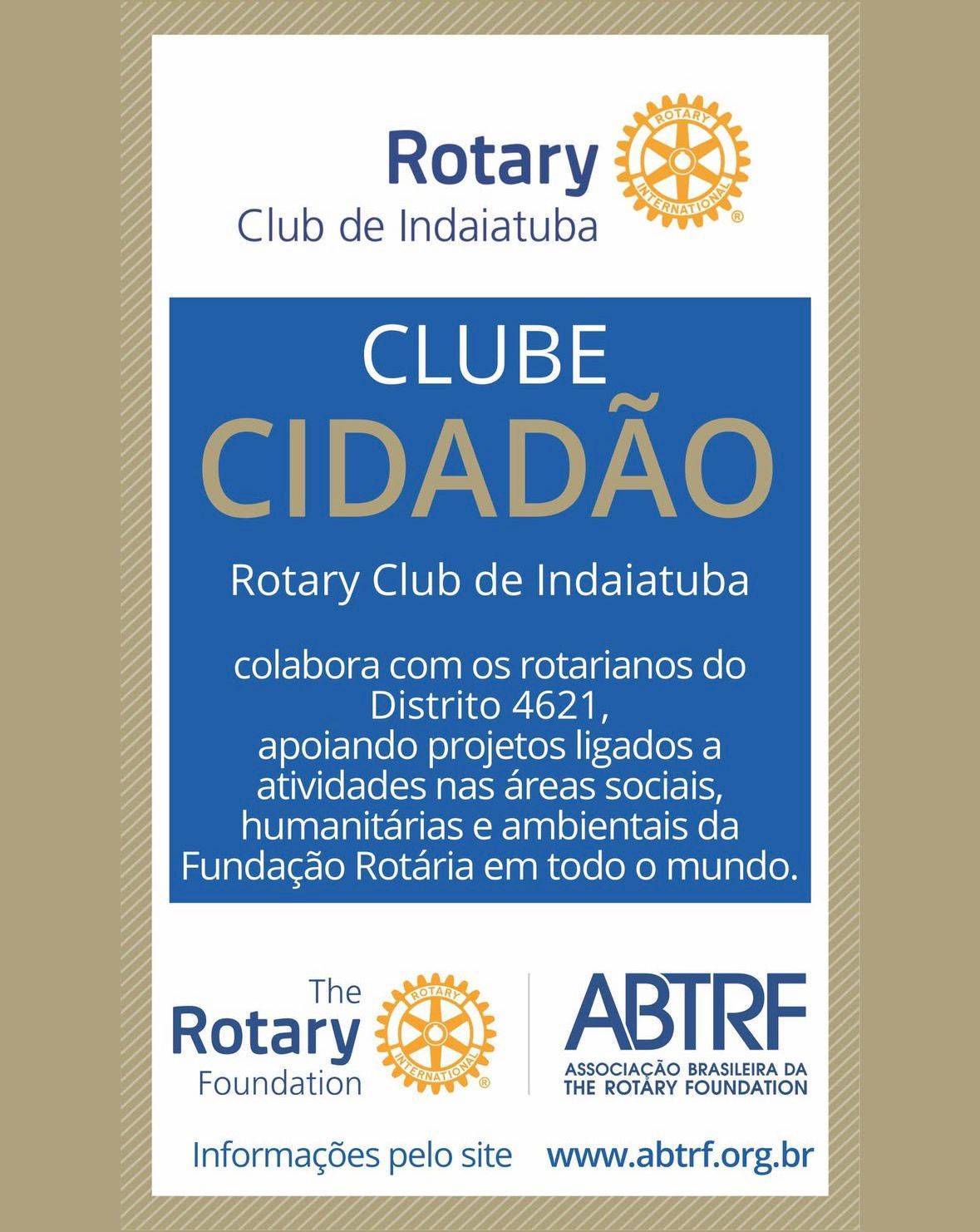 O Rotary Club de Indaiatuba agradece, com profundo reconhecimento, a todos os companheiros, amigos e empresas parceiras e que contribuem para o fortalecimento dos projetos sociais, humanitários e ambientais apoiados pelo Clube Cidadão, em consonância com os ideais da Fundação Rotária.