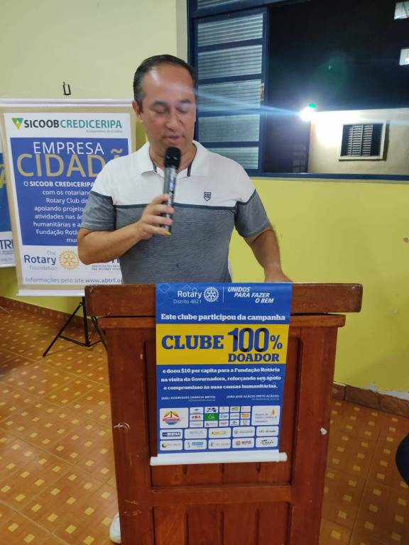O companheiro Natan falou sobre a essência do rotariano e o verdadeiro significado de servir. Logo após, o companheiro Pedro Paulo apresentou, por meio de slides e um vídeo com fotos, as ações e projetos realizados pelo clube nos últimos dois anos em nossa comunidade.