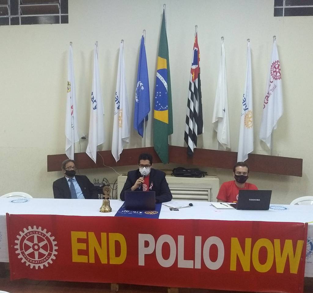 José Eduardo Cantieri Costa, presidente da Comissão da Fundação Rotária, expôs um vídeo lembrando que neste sábado, dia 17, haverá o Telepólio, com o objetivo de arrecadar valores, para o combate à pólio.